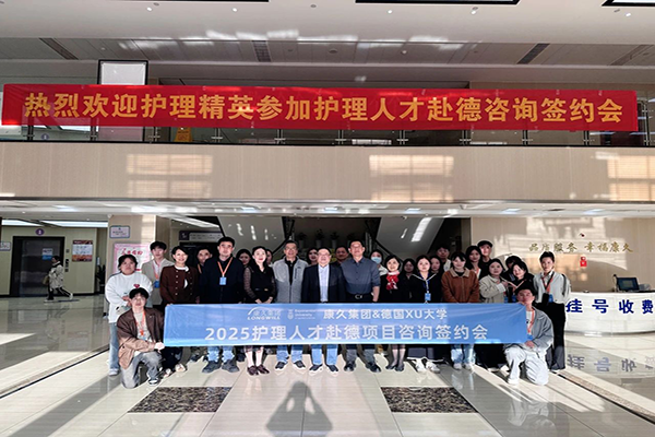 3月22日,由康久集團(tuán)與德國(guó)XU大學(xué)聯(lián)合舉辦的"2025護(hù)理人才赴德咨詢(xún)簽約會(huì)"首場(chǎng)活動(dòng)在杭州臨安賽康醫(yī)院隆重舉行。本次活動(dòng)以“攜手德國(guó)醫(yī)療發(fā)展,護(hù)理人才‘職’…